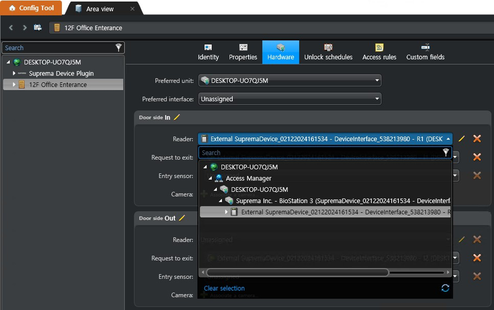 Assign Suprema devices to Reader, Request to exit, and Entry sensor.