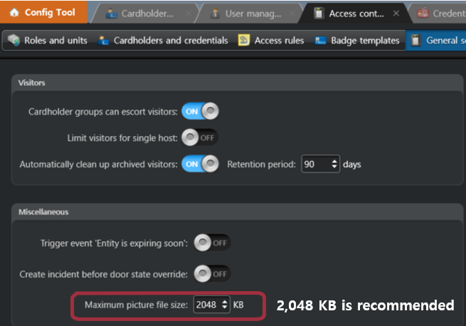 If you'd like to extract face templates from cardholder profile images in GSC, please adjust picture size to ensure picture quality.