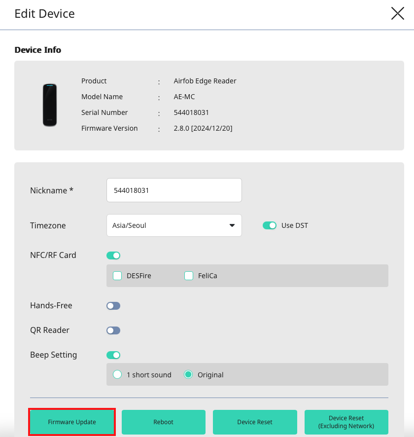 리더기에 따라 최신 펌웨어 버전 2.9 또는 2.10 버전(2025년 8월 기준)을 선택하고 업데이트를 확인하세요.