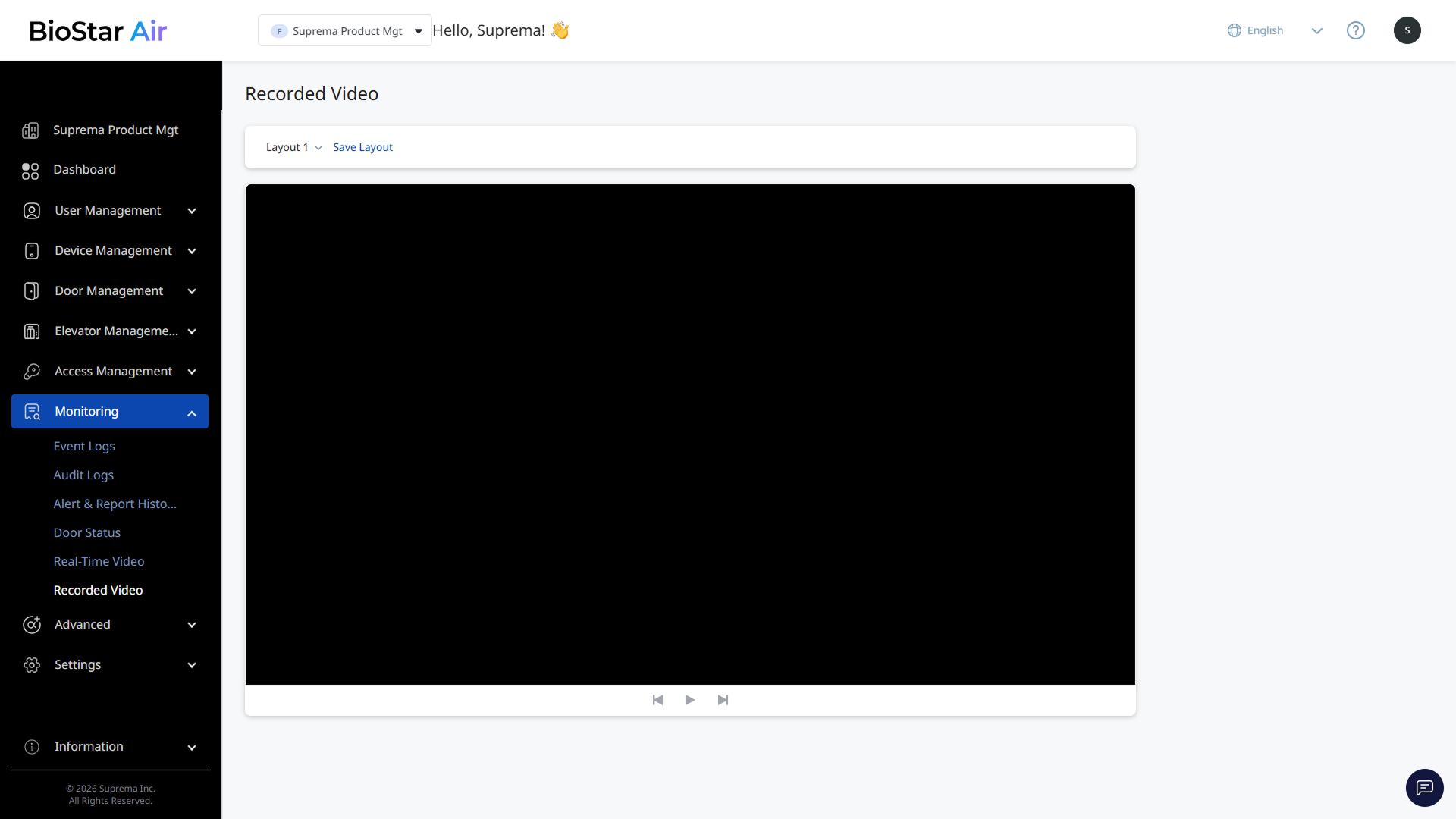 화면 왼쪽 사이드바에서 Monitoring → Event Logs를 클릭하세요. 관련 비디오 클립이 있는 이벤트 로그를 찾아 재생 버튼을 클릭하면 영상을 시청할 수 있습니다.