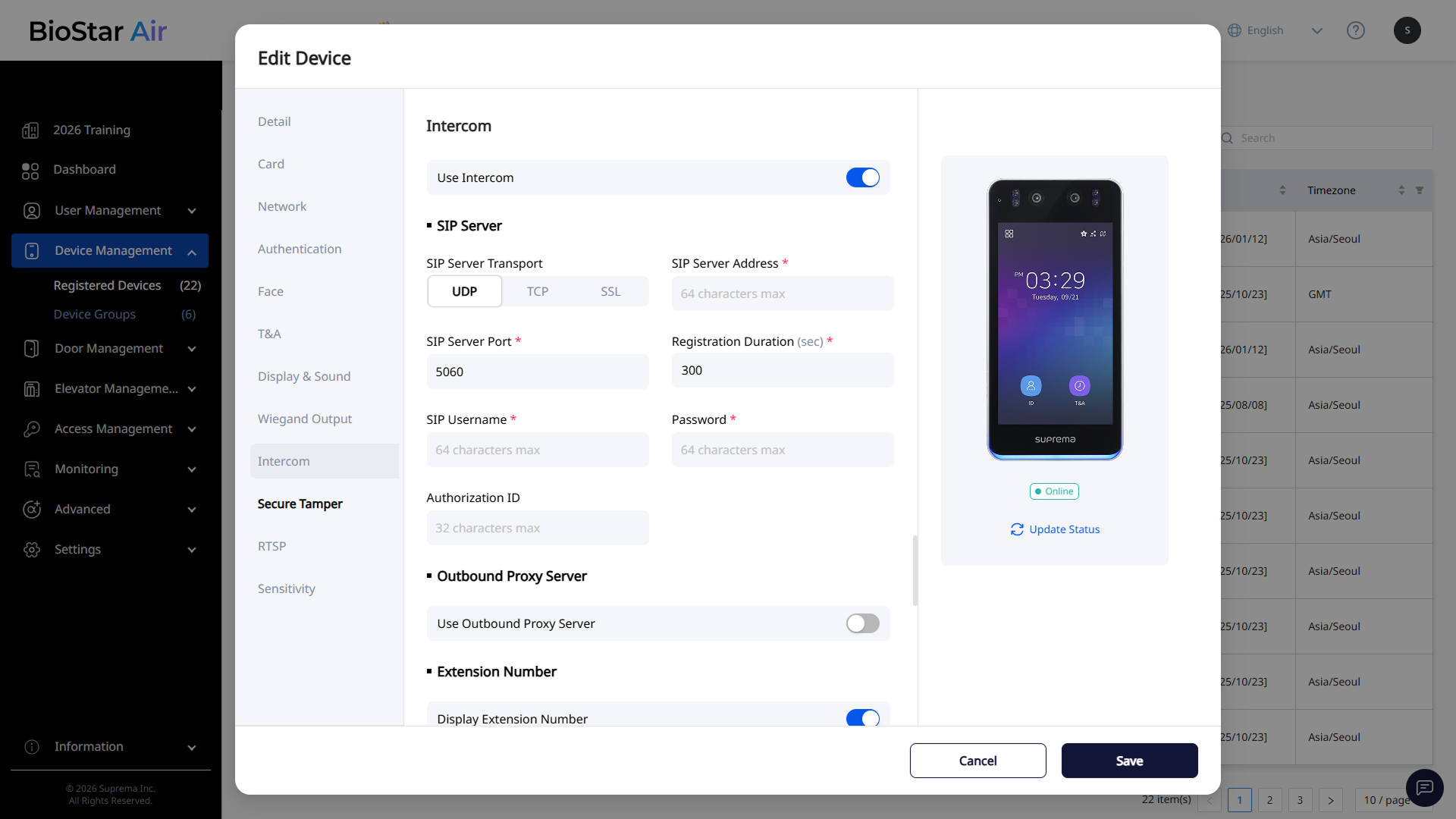 BioStation 3 SIP 인터폰 설정하기
