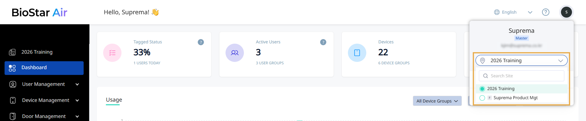 Si ya administra varios sitios pero cada uno utiliza credenciales de inicio de sesión distintas, solicite una migración manual a Suprema. Este proceso consolida las direcciones de correo electrónico y permite administrar todos los sitios con un único inicio de sesión.