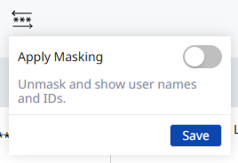 • Apply Masking: 사용자 목록에서 개인 정보 보호를 위해 이름, 아이디 등의 정보를 마스킹(***)할 수 있습니다. 이 기능은 개인 정보 보호가 필요한 환경에서 유용합니다. 토글 버튼을 선택해 기능을 활성화하고, Save 버튼을 클릭하세요.