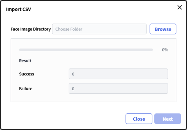 Se recomienda usar la misma ruta para el archivo CSV y los archivos de imágenes de rostro que se van a importar.