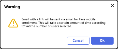El enlace de inscripción de rostro se envía al correo electrónico de los usuarios seleccionados. Una vez que los usuarios completen la carga, su credencial de rostro se añade a sus perfiles de usuario.