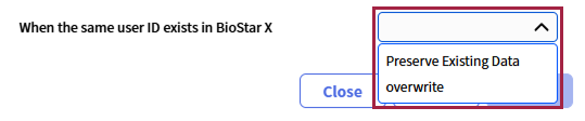 Elige si deseas sobrescribir los datos de usuario ya registrados en BioStar X con la información del archivo CSV y haz clic en Apply.