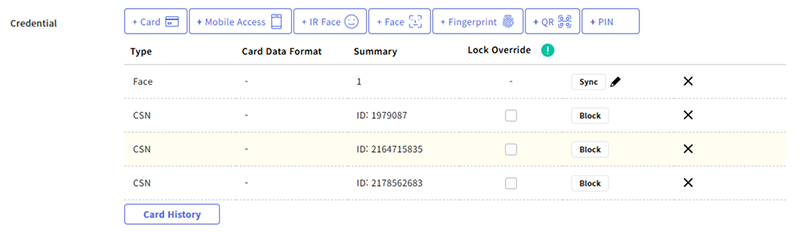 Haz clic en el botón para modificar elementos de credenciales y en el botón para eliminarlos.