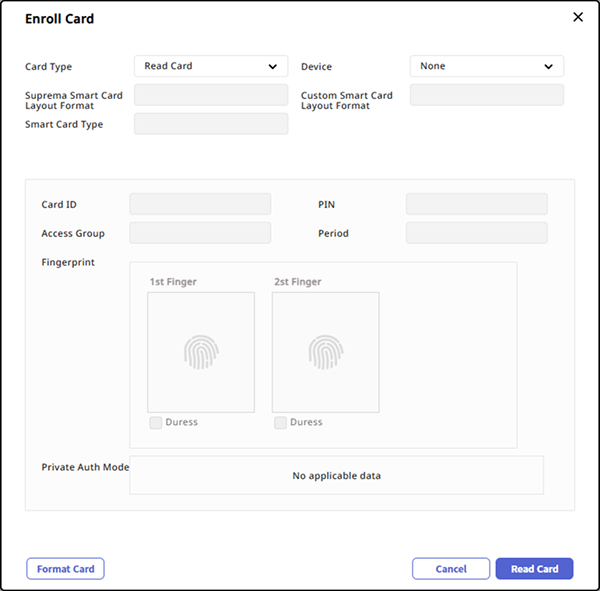 Custom Smart Card: Registra una tarjeta inteligente emitida por un tercero. Haz clic en el botón Read Card para registrar el ID de la tarjeta.