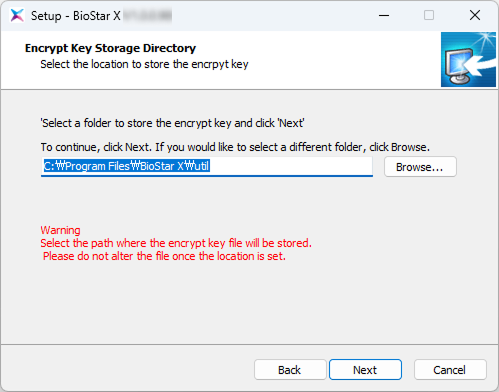 Cuando se elimina BioStar X, el archivo de la clave de cifrado también se elimina.