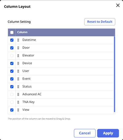 Cuando aparezca la ventana Column Layout, haz clic en las casillas de las columnas para mostrarlas u ocultarlas. También cambia el orden de las columnas mediante arrastrar y soltar.