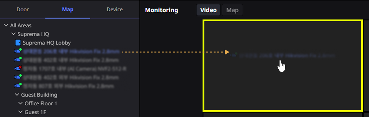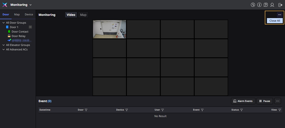 Seleccione la cámara que desea ver desde las pestañas Door o Map, Device en la barra lateral izquierda.