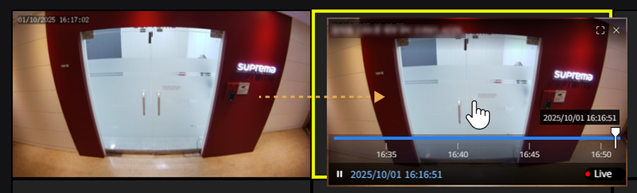 Cuando se produce un evento específico en una puerta establecido por una regla, el elemento de evento correspondiente en la lista de la sección Event mostrará un icono de registro de video (). Al hacer clic en el elemento de evento con el icono de registro de video, se muestra información detallada en el lado derecho de la pantalla, lo que le permite ver el video del momento en que ocurrió el evento específico. Compruebe el video del momento en que ocurrió un evento específico.