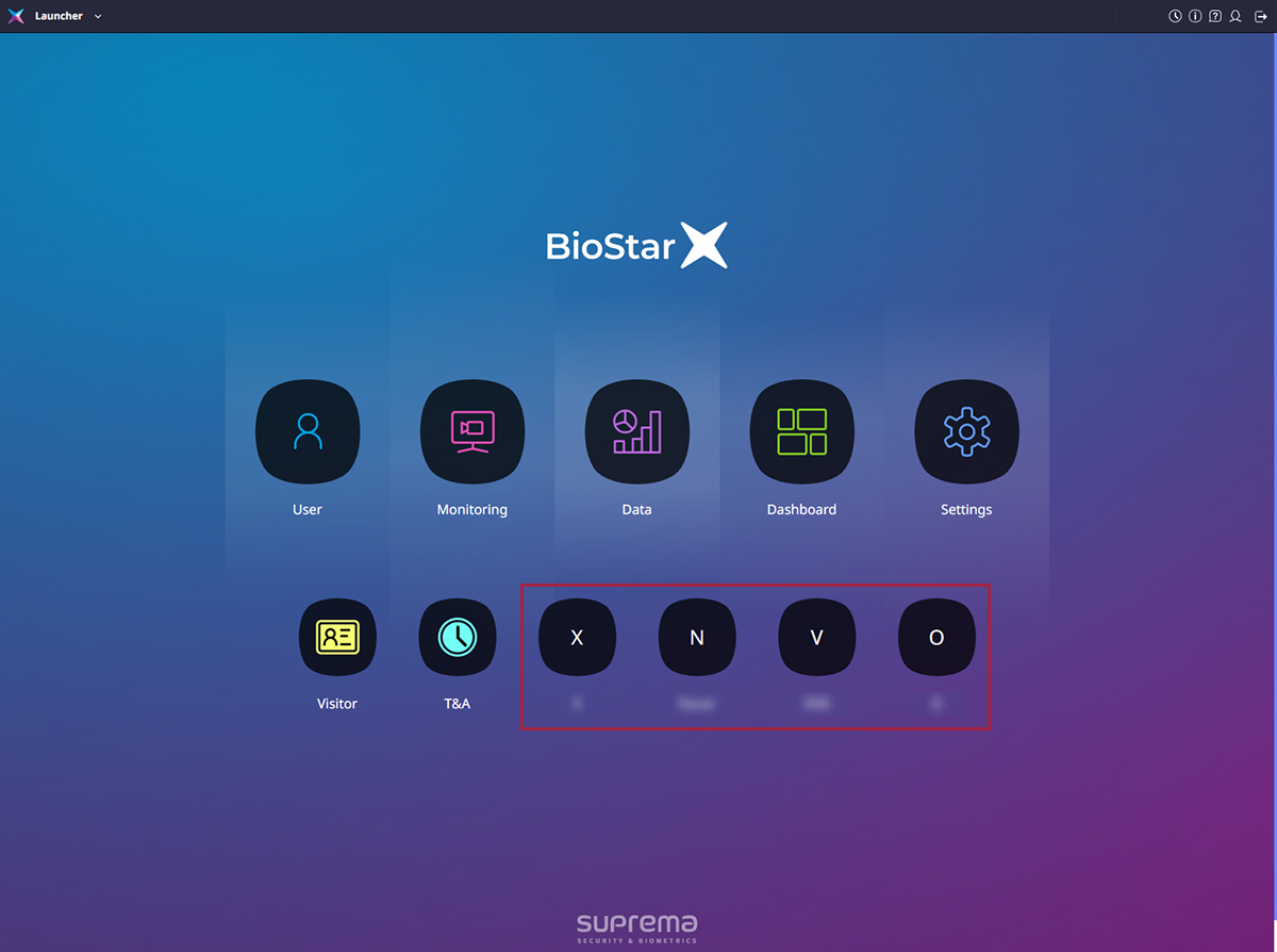Los complementos agregados aparecen en la pantalla Launcher de BioStar X.