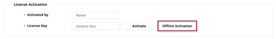 Después de recibir el archivo de licencia (**.lic*) del lugar de compra, haga clic en el botón Offline License Activation para cargar el archivo de licencia.