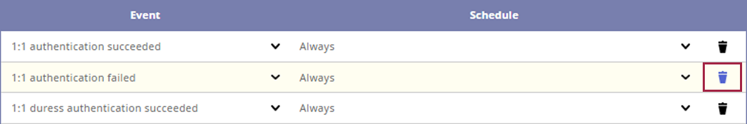 En la lista de la sección Preset, haz clic en para el evento que quieras eliminar.