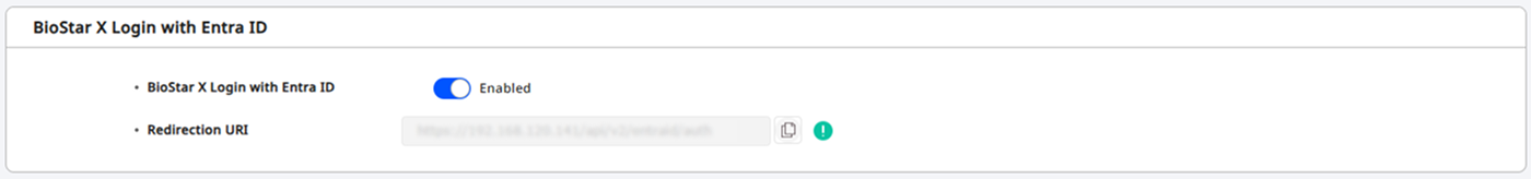 Cambia BioStar X Login with Entra ID a Enabled para habilitar el inicio de sesión en BioStar X mediante Entra ID SSO.