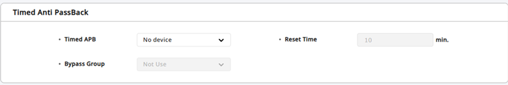 Timed Anti PassBack: Configure el tiempo de inicialización para la función anti-passback. Para obtener más información, consulte lo siguiente.