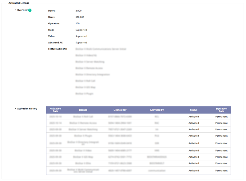 Compruebe la información de la licencia BioStar X activada en Activated License.