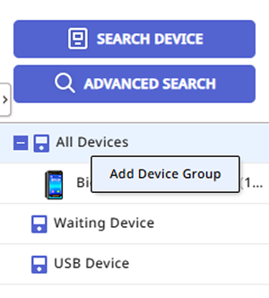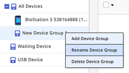 En la sublista de All Devices, seleccione el grupo de dispositivos cuyo nombre desea cambiar y haga clic con el botón derecho.
