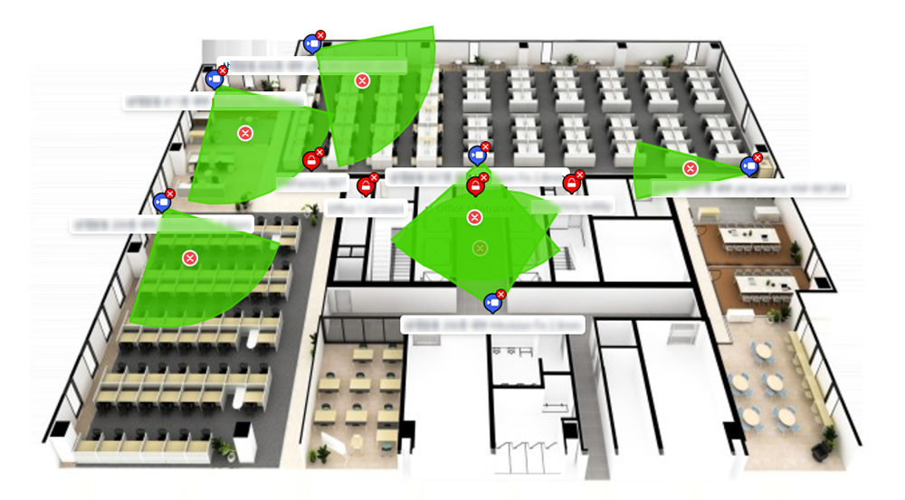Carga un plano del piso o una imagen 3D en vista aérea para agregar un piso y colocar puertas y cámaras.