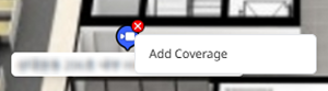 Haz clic derecho en la cámara a la que deseas ajustar el rango de captura en la imagen del piso. Haz clic en Add Coverage en el menú emergente.