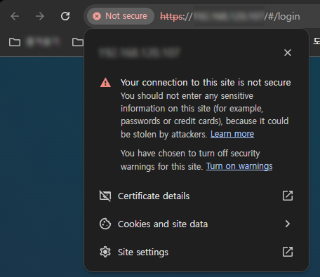 Si accede a BioStar X sin tener instalado el certificado HTTPS, aparecerá una advertencia de seguridad como la siguiente en su navegador web.