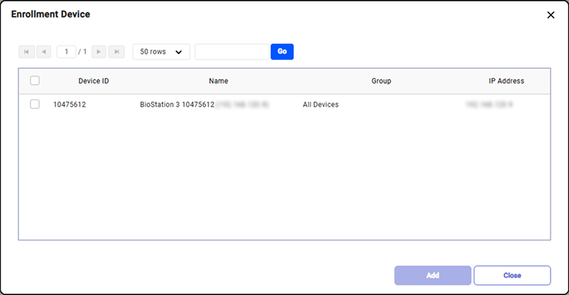 Cuando aparezca la ventana Enrollment Device, haga clic en la casilla de verificación del dispositivo deseado en la lista.