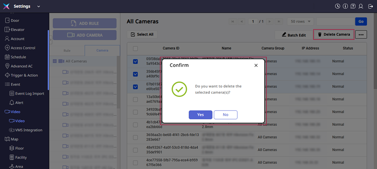Haz clic en el botón Delete Camera en la esquina superior derecha de la pantalla.