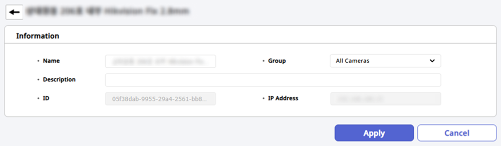Después de editar toda la información de la cámara, haz clic en el botón Apply en la esquina inferior derecha de la pantalla.