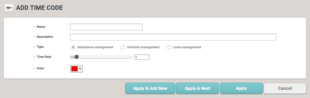 Attendance management: Configura como el Time Code que se utilizará para la asistencia normal.