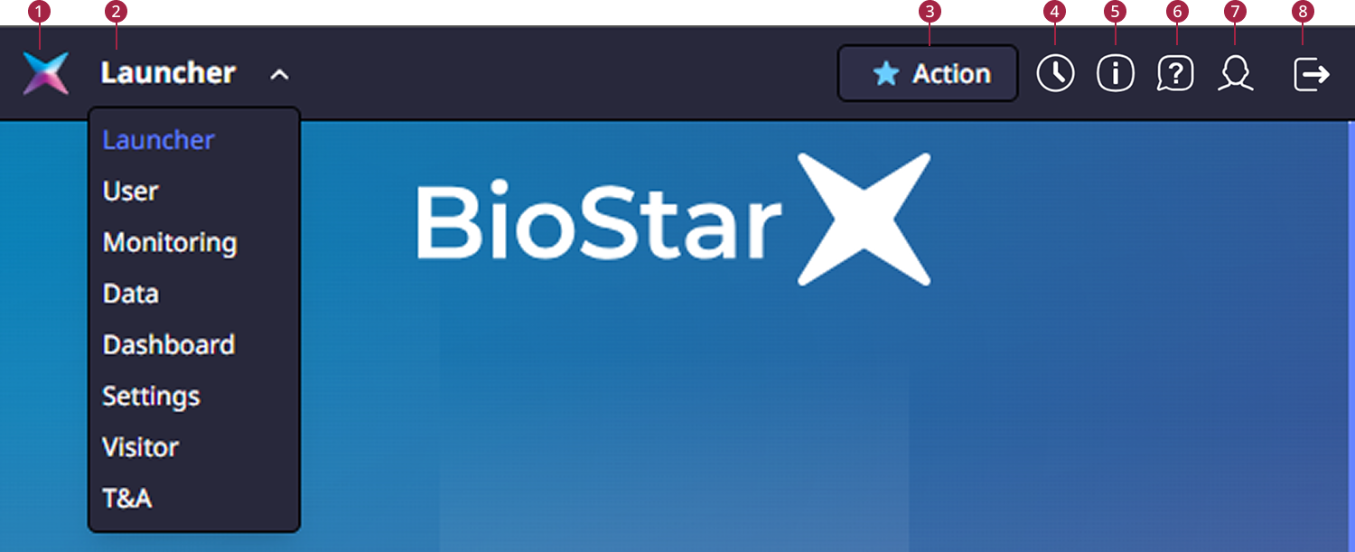 Logo de BioStar X: Botón de enlace que permite a los usuarios regresar a la página Launcher de BioStar X.