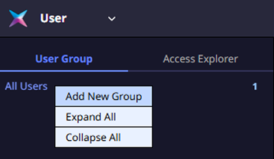 Expanda o contraiga la lista de grupos de usuarios. En la pestaña User Group, seleccione All Users y haga clic derecho. En el menú emergente, haga clic en Expand All o Collapse All.