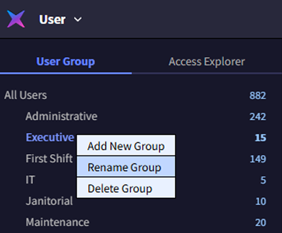 En la barra lateral izquierda de la pantalla, seleccione All Users en la pestaña User Group y haga clic derecho.