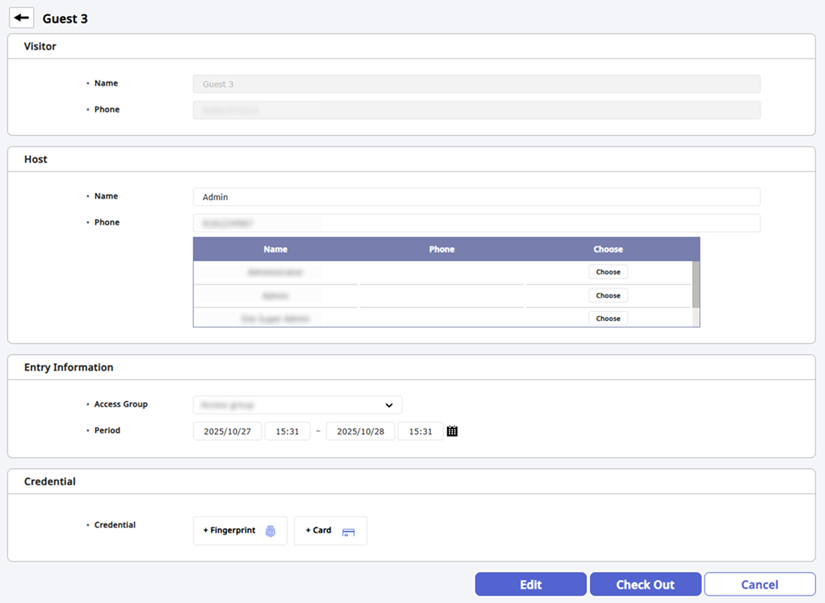 Revisa los visitantes en estado de check-in y modifica la información de la visita o procesa el check-out.
