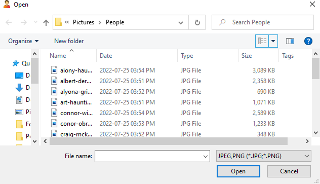 This is one of the options for non-presential enrollment. When you click the Upload from File button, a File Selector dialog will be shown for you to select the picture from the person you’re about to enroll.