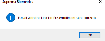 This is the second option for non-presential Facial enrollment, this option allows you to send a safe pre-enrollment link through email where the user will be able to take a picture of oneself and in real time send that pre-enrollment data back to the customer’s server so that in the first time the user present in the customer facilities he/she will be biometrically recognized (depending on the Access Control Policies previously configured between C•CURE/BioStar 2).