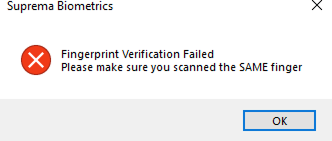 The finger is already enrolled in? The verification will fail if the finger is found to be already enrolled to the Same or Other user.