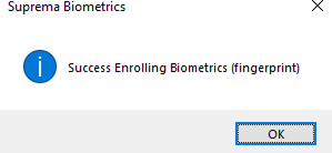 The Please wait dialog shows while the integration is synchronizing the user with the Suprema devices, once the process is done you will see something similar to:
