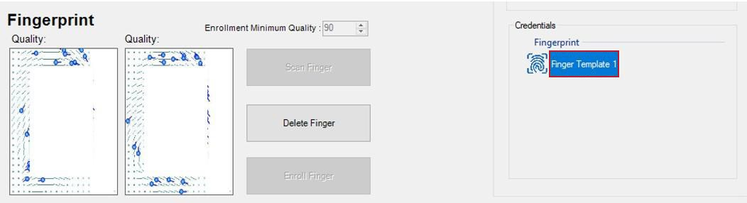 If you double click on the Finger Template showing under Credentials you will see the template displaying on the Fingerprints panel.