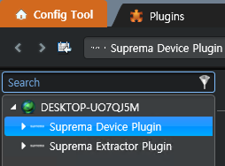 Open the left arrow of the Suprema Device Plugin and select a registered device. The Device Settings area will appear.