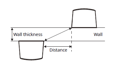 壁の厚さ 距離 100 mm 250 mm 120 mm 250 mm 150 mm 180 mm