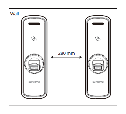 RF信号干渉を回避するため、最小離隔距離を確認して設置してください。