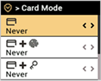 AUTH → Auth Mode → Card Mode を選択して 6 を押します。