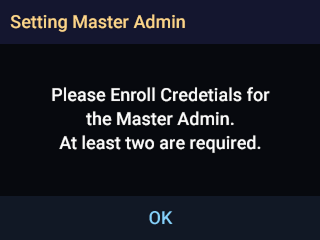 2種類以上のクレデンシャルを登録した後、OK を押すと Master Admin の登録が完了します。