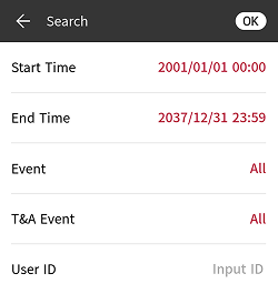 検索条件を設定してOKを押すと、条件に一致するログが画面に表示されます。