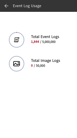 →を押します。 デバイスのイベントログとイメージログの使用量を確認できます。