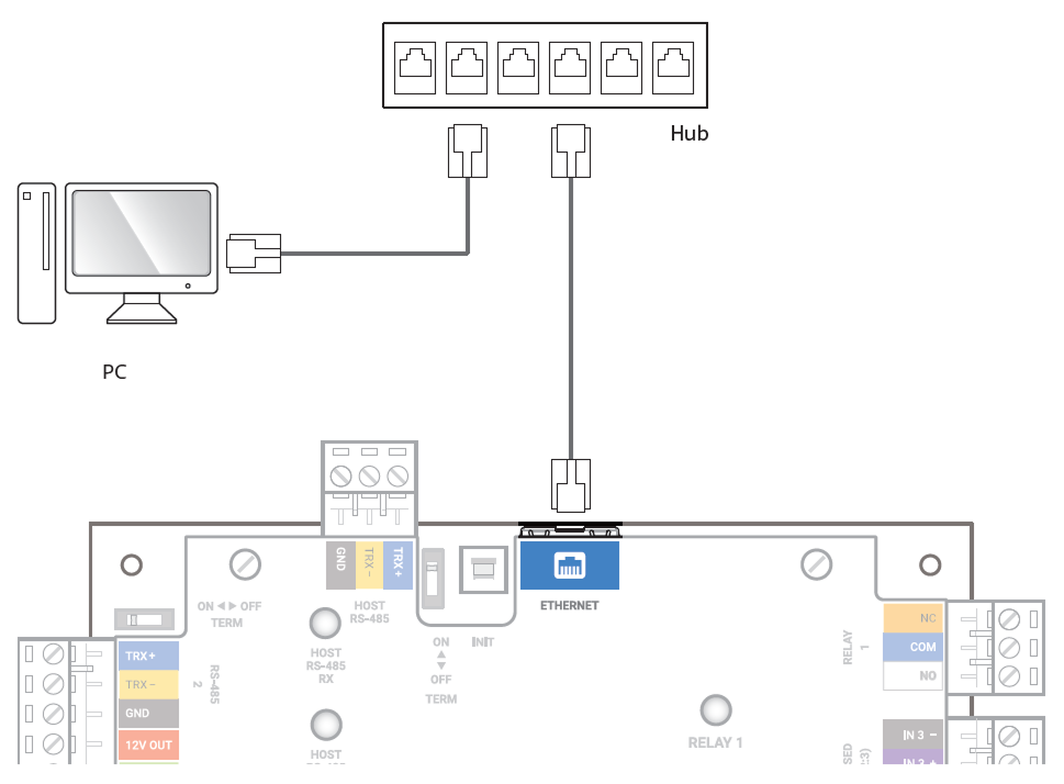 標準タイプのCAT-5ケーブルを使用してハブに接続できます。
