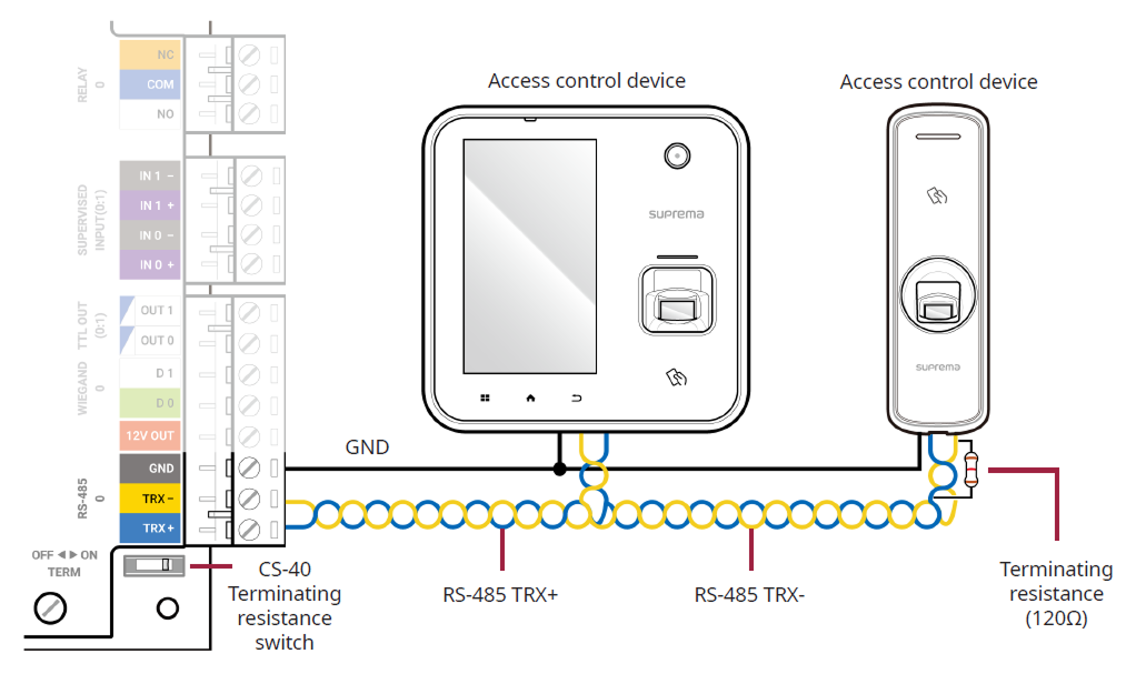 製品に接続できるRS-485装置は合計64台を超えることはできません。