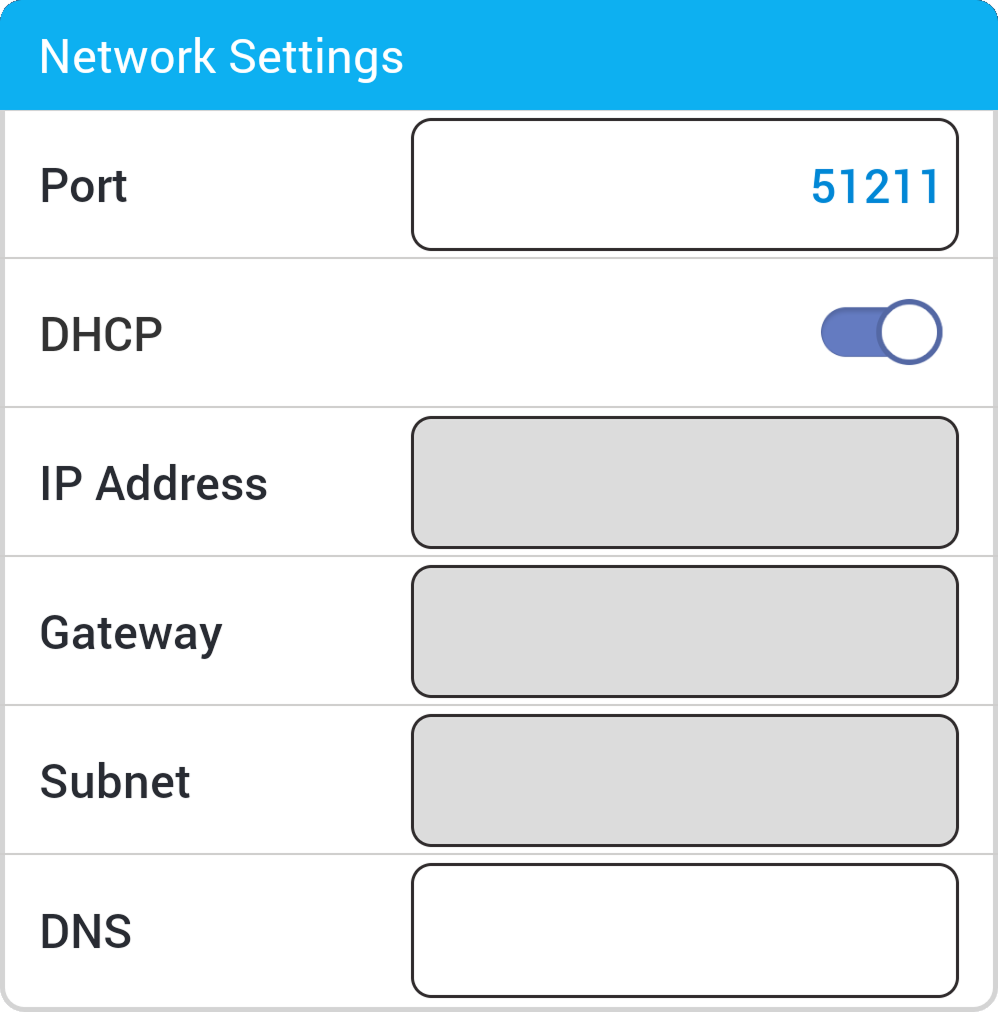 IP Address、Gateway、Subnet:デバイスのネットワーク情報を入力します。