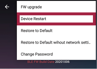 デバイスを再起動すると、モバイル機器との BLE 通信が切断されます。 自動で再接続するには、Auto Connect 機能を有効にします。 詳細な設定方法は「アプリを設定する」を参照してください。